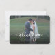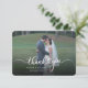 A great and thoughtful way to thank your friends, family, and coworkers who graced you with their presence on your your wedding day with this modern photo thank you note cards featuring a script hand lettered "thank you" and a love heart.