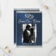 This romantic design features an elegant blue background with ribbon borders, placeholder for couple's photo, & two linked hearts with the date for the event in elegant script on the front. The back has a monogram placeholder, more info and place for your website on the back. Available in several colours for your wedding theme. (Ribbon is simulated in the artwork). Designed to coordinate with the "Two Shall Become One - Silver & Gold" Wedding Collection. To change details, click «Personalise». To move the text or change the text size, font, or colour click «Click to customise further»