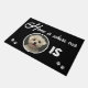 Photo Home is Where My Dog Is Personalised Cute Custom Black Welcome Mat | This cute and inspirational design features the quote "Home is where my [your pet's face] is" in modern and trendy typography, flanked with black pawprints, on a black background. This is a great gift for the dog owner who loves their dog.