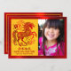 “Happy New Year” red foil typography in both Chinese and English, a stunning visual of a graphic red faux foil horse, flowers and cloud, your names, and the photo of your choice overlay a traditional Asian yellow circle pattern and brushed red faux foil border on the front. On the back, a cloud and star visual, along with your personal message, overlay a brushed red faux foil background. Feel the warmth and joy of the holiday season whenever you send this stylish yet modern, personalized 2026 Chinese Lunar New Year of the Horse photo greeting card. Make sure someone special receives this greeting!