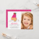 Sweet celebration Ice cream number four with sprinkles for a Girls fourth Birthday. Easy to personalise with your photo & party info. Flip our invite over to view a coordinating pink background for an extra special touch.