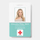 Photo ID Employee Hospital Medical Professional aqua or turquoise and white Badge.