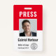 Personalise these vertical press pass badges with journalist or reporter photo and name, along with two lines of additional custom text for title or role, media outlet, or valid through date. Customise with company or media outlet logo. PRESS appears at the top in bold white lettering. Additional custom text field located on the back for return information or other details, as well as a template for a barcode or a QR code.
