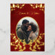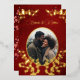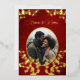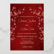 This elegant wedding invitation features a round photo surrounded by real gold foil cherry blossom branches on a shimmering floral deep burgundy background. Bride and groom names in an elegant classic script.