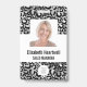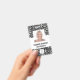 This badge features a trendy modern silver and black faux foil leopard print background divided by a solid white colour block. Customise it with your square photo, name, job title, logo, company name, address or other information, and optional barcode.