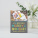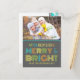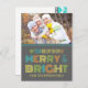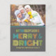 Merry and bright Christmas custom photo postcards in contemporary yellow, grey, green, aqua turquoise teal blue, and orange with fun text and chevron zigzags stripes pattern, elegant and simple with stylish text. Wish your family and friends all the best this holiday season with this fun postcard.