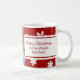 Merry Christmas Aunt custom photo mug in stylish red and white snowflake pattern with customisable text and photo, perfect as a holiday gift.