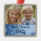 Merry christmas dad ornament customisable with your own family photo in elegant blue and white festive snowflakes pattern. A great christmas gift for dad this holiday season.