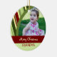 Merry christmas grandma ornament customisable with your own family photo in elegant red, green, and yellow stripes pattern. A stylish christmas gift for grandma this holiday season.