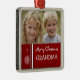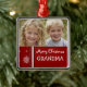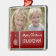 Merry christmas grandma ornament customisable with your own family photo in elegant red and white festive snowflakes and stripes pattern. A stylish christmas gift for grandma this holiday season.