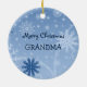 Merry christmas grandma ornament customisable with your own family photo in elegant blue and white festive snowflakes pattern. A stylish christmas gift for grandma this holiday season.
