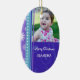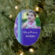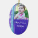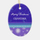 Merry christmas grandma ornament customisable with your own family photo in modern blue, purple and white with festive snowflakes and swirls pattern. A stylish christmas gift for grandma this holiday season.