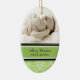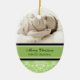 Merry christmas grandma ornament customisable with your own family photo in elegant green, black and white classic floral damask pattern. A stylish christmas gift for grandma this holiday season.