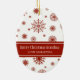 Merry christmas grandma ornament customisable with your own family photo in elegant red and white snowflakes pattern. A stylish christmas gift for grandma this holiday season.