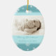 Merry christmas grandma and grandpa ornament customisable with your own family photo in elegant blue and white with festive snowflakes pattern. A stylish christmas gift for grandparents this holiday season.