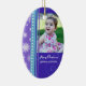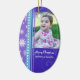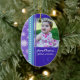 Merry christmas grandma and grandpa ornament customisable with your own family photo in modern blue, purple and white with festive snowflakes and swirls pattern. A stylish christmas gift for grandparents this holiday season.