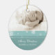 Merry christmas grandma and grandpa ornament customisable with your own family photo in elegant turquoise blue and white with festive snowflakes pattern. A stylish christmas gift for grandparents this holiday season.