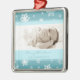 Merry christmas mum ornament customisable with your own family photo in elegant blue and white with festive snowflakes pattern. A stylish christmas gift for mum this holiday season.