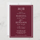 Modern photo boho burgundy lined border minimalist wedding invitations templates with initials at the top for you to customise.