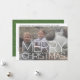 This photo card includes a place for one horizontal photo with a large simple font type overlay in white. Use one landscape photo with the subject preferably to the top. The white border around the photo leaves room for a family greeting and signature. If you need to move anything around, click on the customise button to make changes. ----