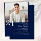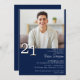 Photo Modern Minimalist Navy Blue 21st Birthday Invitation