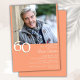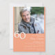 Photo modern minimalist peach 60th birthday party invitation for a fun birthday party. Age can be changed. This invitation is simple and elegant, adult milestone birthday invitation for men and women. The peach background colour can be changed to any colour of your choice using the design tool.