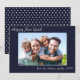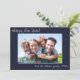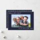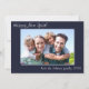Photo Modern Simple Family Happy New Year navy Blue design. Change out the 1 photo and text by clicking on Personalise above. Card features a photo, greeting and signature line in a fun white handwritten script.