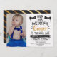 Looking for a cute watercolor photo Mr onederful birthday invitation? This design might be right for you. It features some hand written style fonts, a banner, two bow ties and various decorative elements, on a scanned watercolor paper background. The back of the invitation is black with a faux gold diagonal line pattern. Same design is also available without a photograph at the store. This watercolor Mr onederful 1st birthday invitation is ready to be personalised.
