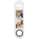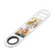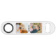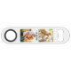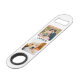 4 photo & name double sided personalised stainless bottle opener bar blade with rounded a white border.