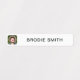 Personalised rounded photo and name adhesive stickers on white. Perfect on school books for the kids.