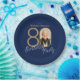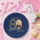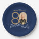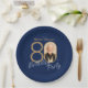 Photo Navy Blue Gold Elegant Custom 80th Birthday Paper Plate