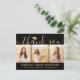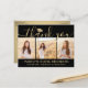 Send a stylish note of gratitude with custom 3 photo collage black and gold graduation thank you postcards. All pictures and wording are simple to personalise. (IMAGE PLACEMENT TIP: An easy way to centre a photo exactly how you want is to crop it before uploading to the Zazzle website.) This template can be customised with any wording of your choice such as future education plans, new job position or favourite inspirational quote. If you prefer to hand write your message, simply delete the example text or use the extra space above the new address and contact info. Design features a faux foil mortar board cap, handwritten style script calligraphy, modern minimalist typography, and three photos of your choice, such as senior pictures or images from the commencement ceremony. Please note that gold is printed colour, not metallic foil. These elegant personalised cards are a trendy and chic way to thank family and friends for sharing your graduation celebration. Congratulations to the graduate!