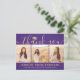 Send a stylish note of gratitude with custom 3 photo collage purple and gold graduation thank you postcards. All pictures and wording are simple to personalise. (IMAGE PLACEMENT TIP: An easy way to centre a photo exactly how you want is to crop it before uploading to the Zazzle website.) This template can be customised with any wording of your choice such as future education plans, new job position or favourite inspirational quote. If you prefer to hand write your message, simply delete the example text or use the extra space above the new address and contact info. Design features a purple ombre background, faux foil mortar board cap, handwritten style script calligraphy, modern minimalist typography, and three photos of your choice, such as senior pictures or images from the commencement ceremony. Please note that gold is printed colour, not metallic foil. These elegant personalised cards are a trendy and chic way to thank family and friends for sharing your graduation celebration. Congratulations to the graduate!