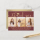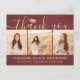 Send a stylish note of gratitude with custom 3 photo collage burgundy and gold graduation thank you postcards. All pictures and wording are simple to personalise. (IMAGE PLACEMENT TIP: An easy way to centre a photo exactly how you want is to crop it before uploading to the Zazzle website.) This template can be customised with any wording of your choice such as future education plans, new job position or favourite inspirational quote. If you prefer to hand write your message, simply delete the example text or use the extra space above the new address and contact info. Design features a maroon red ombre background, faux foil mortar board cap, handwritten style script calligraphy, modern minimalist typography, and three photos of your choice, such as senior pictures or images from the commencement ceremony. Please note that gold is printed colour, not metallic foil. These elegant personalised cards are a trendy and chic way to thank family and friends for sharing your graduation celebration. Congratulations to the graduate!