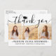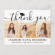 Send a stylish note of gratitude with custom 3 photo collage black and white graduation thank you postcards. All pictures and wording are simple to personalise. (IMAGE PLACEMENT TIP: An easy way to centre a photo exactly how you want is to crop it before uploading to the Zazzle website.) This template can be customised with any wording of your choice such as future education plans, new job position or favourite inspirational quote. If you prefer to hand write your message, simply delete the example text or use the extra space above the new address and contact info. Design features a black mortar board cap, handwritten style script calligraphy, modern minimalist typography, and three photos of your choice, such as senior pictures or images from the commencement ceremony. These elegant personalised cards are a trendy and chic way to thank family and friends for sharing your graduation celebration. Congratulations to the graduate!