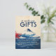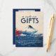 The front of the card features a striking illustration of Mount Fuji rising above a painterly sea, surrounded by splashes of deep crimson and indigo. With the graceful caption “a note on GIFTS” in bold modern type and flowing script, the card invites guests to read on with warmth and openness. The artwork’s serene yet dramatic palette evokes feelings of calm, gratitude, and reverence, perfect for a couple seeking a meaningful touch.