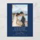 The reverse continues the theme of elegance and personalisation, featuring a captivating photo of the couple set against the iconic backdrop of Mount Fuji. A deep navy border frames the moment with sophistication, while a warm message beneath the image expresses joy, appreciation, and anticipation. Together, the couple’s words and photo create a heartfelt memento for guests, one that celebrates connection and shared happiness.