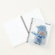 A personalised spiral notebook with a cute photograph of a little snowman. Standing outside in the winter with snow falling all around. This cute little guy is dressed up in blue knitted hat and scarf.