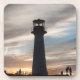 Coaster, photo of a lighthouse at sunset. Title: "Contemplation", Magdalen Islands, Quebec, Canada. Marie-Ève LaBadie photographer
