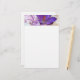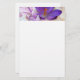 Stationery paper with a lovely photograph of a dark purple crocus set inside a glass jar. A light purple blossom is present in the background.