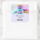 Kitchen product stickers with a delicious photo featuring a stack of colourful macarons.
