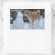 photo of cute akita kissing snowman akita dog rectangular sticker