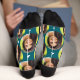 These fun dark teal socks feature a photo of a girlfriend for boyfriend in a trendy offset pattern with white triangles. These cute socks are a great way for your boyfriend (or husband) to remember you as he pulls them on! This is a wonderful birthday gift, Christmas gift, or stocking stuffer and he will love them (almost as much as he loves you!)