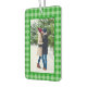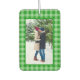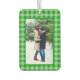 A design with a placeholder photo, inside a green frame with rounded corners, on a gingham plaid with green checks as a background.