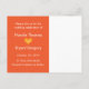 Looking for a save the date card both fun and modern? Look no further, add your picture and information to this save the date card. Custom colours available upon request. Shown in orange with a lighter orange heart and white text.