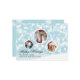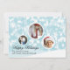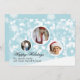 Pretty robin's egg blue and white custom photo Christmas greeting card done in the flat style, with three white framed picture areas in the shape of ornaments, against a blue and white snowflake background. Personalise with your pictures and text.