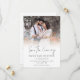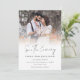 Modern Photo Overlay QR Code Script Wedding Save the Evening. With a QR code to your wedding website on the back so your guests can easily visit your wedding website. Your QR code will be automatically generated to update the sample code in the design, when you simply change the sample URL in the template with your own wedding website URL. Save The Evening is in a stylish set script. Replace the sample photo with your own favourite and personalise the rest of the text.