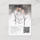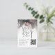 Minimalist Photo Overlay Script QR Code Wedding RSVP Card. Invite your guests to reply online. Add your QR code to the reply page of your wedding website. An informal set typography in black for the main heading RSVP and the rest of the text which can easily personalise. Replace the sample photo with your own favourite of landscape orientation.