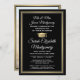 Share the joy of a high school or college graduation and invite family and friends to celebrate with these custom photo black, gold and white party invitation announcements. (IMAGE PLACEMENT TIP: An easy way to centre a picture exactly how you want is to crop it before uploading to the Zazzle website.) This formal style template includes parents' and graduate's names, as well as any info of your choice, such as celebration details, special honours, degree title, favourite inspirational quote, graduate's new address, future education plans, or job position. All wording is simple to personalise. Design features a modern black background, faux gold foil border & mortar board cap, elegant white script calligraphy, traditional typography, and one photo of your choice, such as a senior picture or image from the commencement ceremony. Please note that gold is printed colour, not metallic foil. These graduation announcement cards are a trendy and chic way to share your special day celebration with family and friends. Congratulations to the graduate!