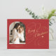 Elegant stylish Merry Christmas faux gold classic calligraphy script family photo red holiday card with your custom personalised text on both sides. +++++++++ PLEASE NOTE that the background colour is editable. You can change it after selecting CUSTOMIZE option down below the PERSONALIZE IT menu. If you don't feel at ease changing it, please ask Zazzle Live Design Service or the designer for help.